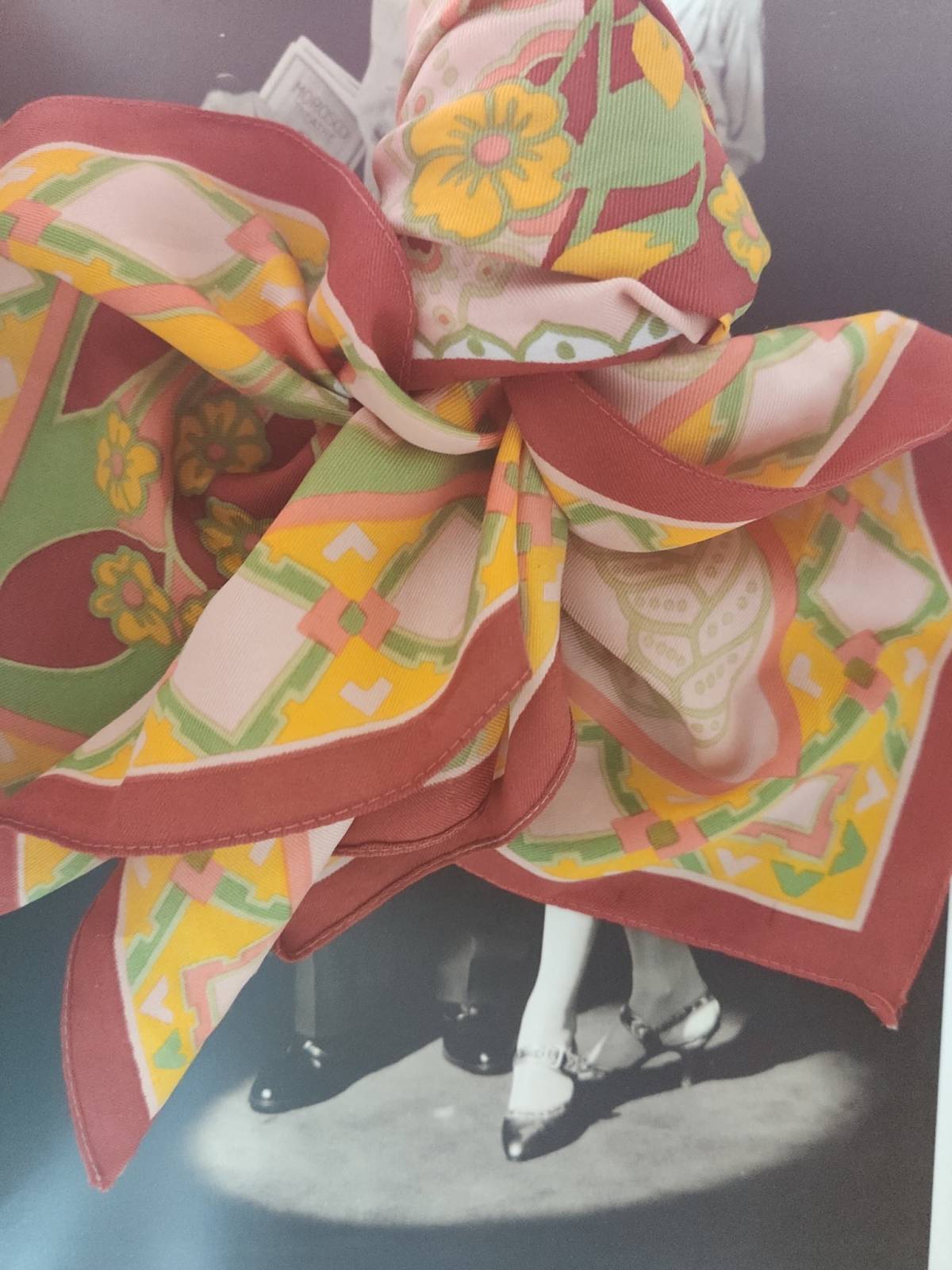 Pañuelo de estampado sesentero, para Señoras a las que el mundo retro les retroalimenta, porque recordar otras décadas y recuperarlas, sin duda, nos alimenta.